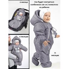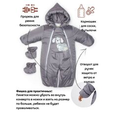 Комбинезон-конверт "трансформер", Зима, Серый арт.147шм