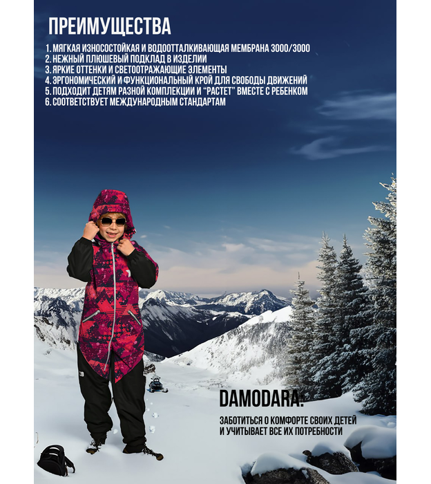 Damodara, Комбинезон, Зима, №181 Бордовые треугольники, арт. 238Ф