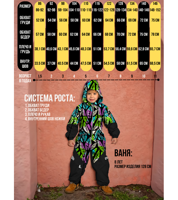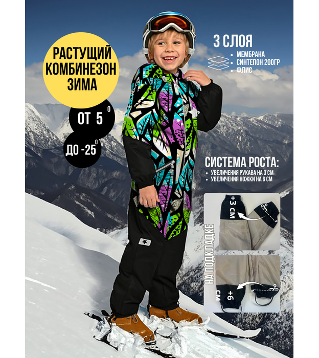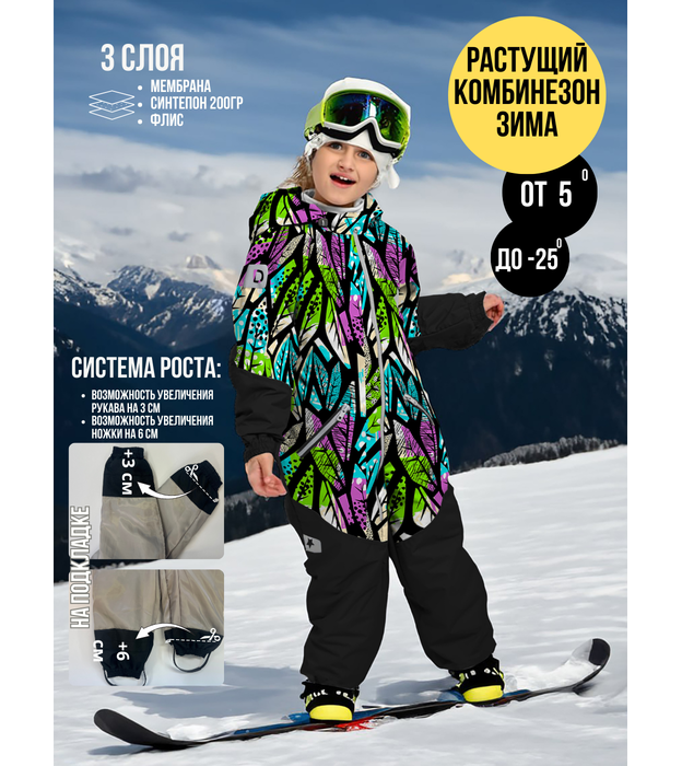 Damodara, Комбинезон, Зима, №54 Розово-зеленые листья, арт. 238Ф