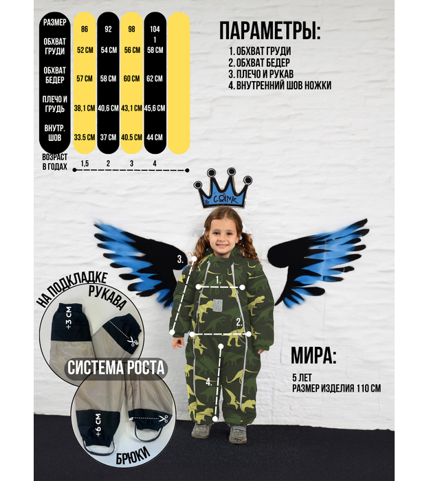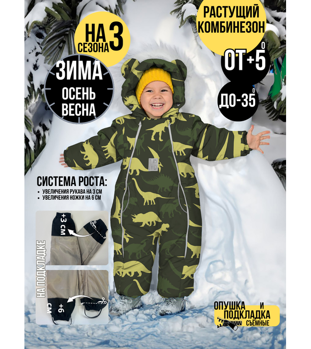 Комбинезон, №30 Динозавры камуфляж , растущий, 263шм/2