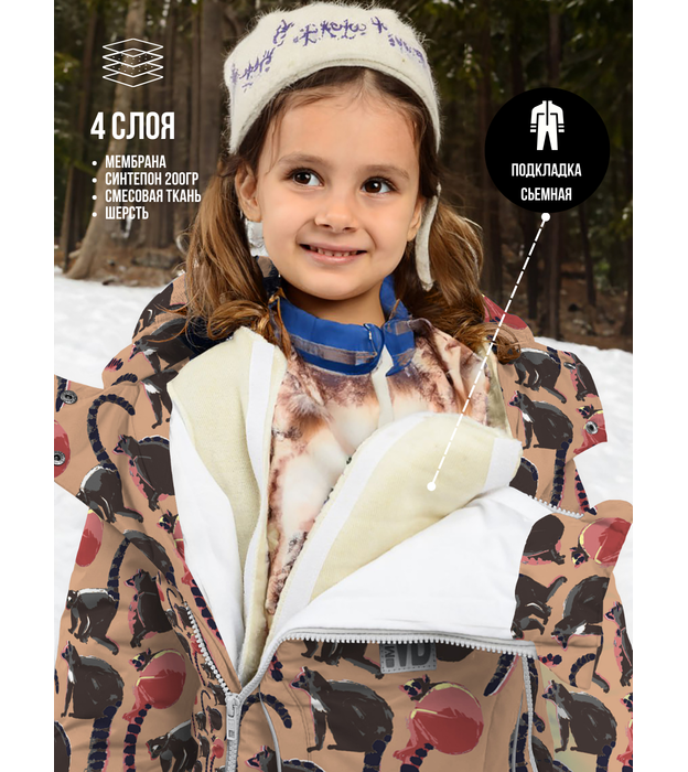 верх-100%пэ, утеплитель синтепон 200гр,подстежка съемная с содержанием шерсти 10%