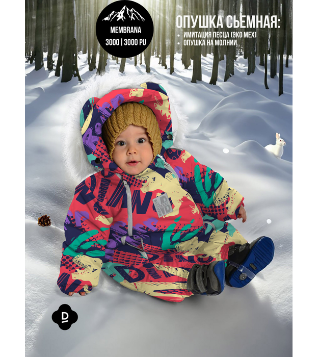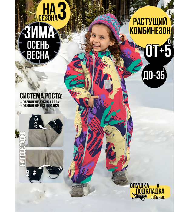 Комбинезон, №89 Дино красный , растущий , 263шм/2