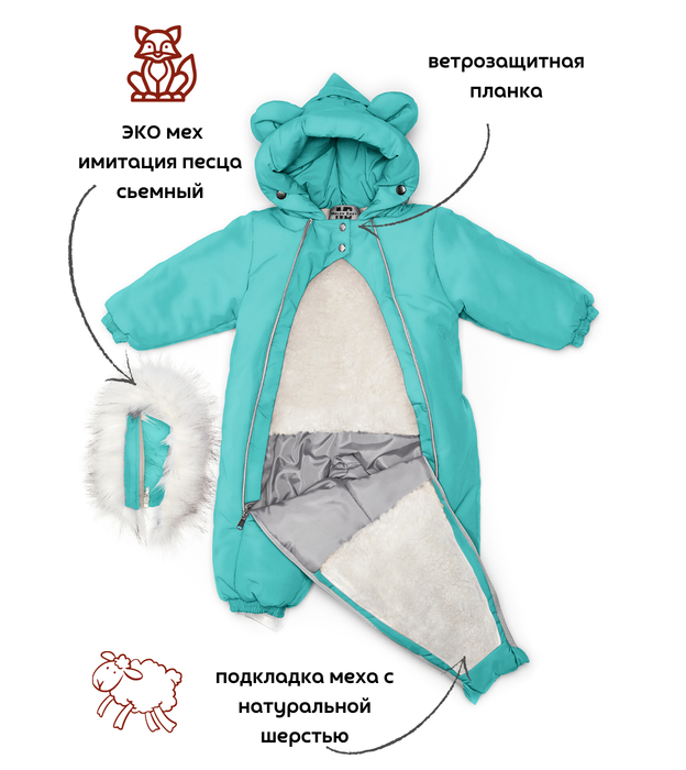 Комбинезон детский зимний для новорожденных. Этот классический детский зимний комбинезон превосходное дополнение к зимнему гардеробу. Он изготовлен из сверхпрочного материала и поэтому станет идеальным выбором для активных детей, которые любят играть на свежем воздухе. Съемный капюшон обеспечивает дополнительную безопасность и эффективно защищает щечки от морозного ветра, а съемные штрипки не дадут концам брючин задираться во время веселых игр на свежем воздухе. Дополнительно утеплен несъемной жилеткой с содержанием шерсти.