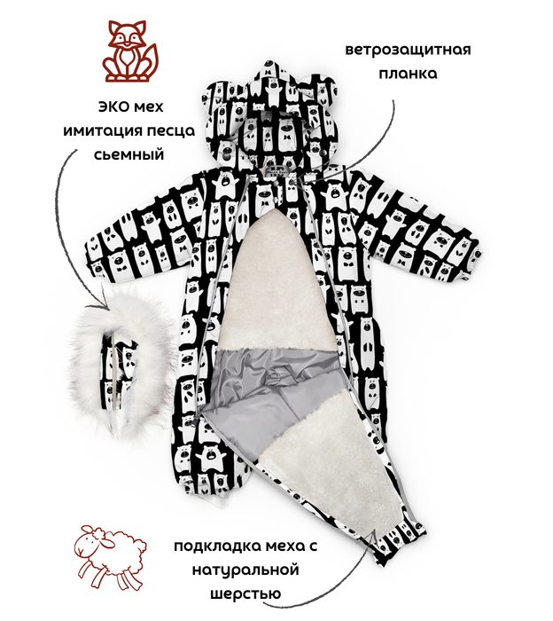 Комбинезон детский зимний для новорожденных. Этот классический детский зимний комбинезон превосходное дополнение к зимнему гардеробу. Он изготовлен из сверхпрочного материала и поэтому станет идеальным выбором для активных детей, которые любят играть на свежем воздухе. Съемный капюшон обеспечивает дополнительную безопасность и эффективно защищает щечки от морозного ветра, а съемные штрипки не дадут концам брючин задираться во время веселых игр на свежем воздухе. Дополнительно утеплен несъемной жилеткой с содержанием шерсти.