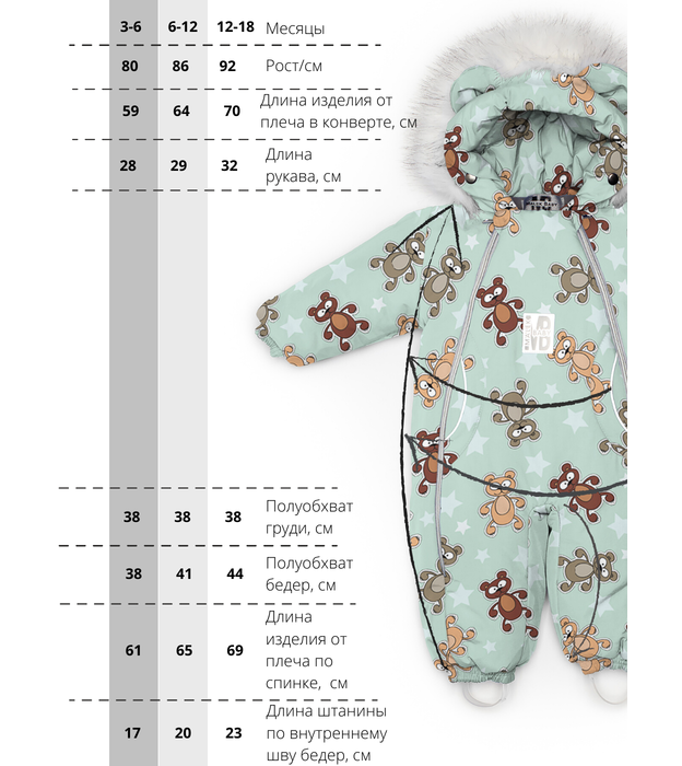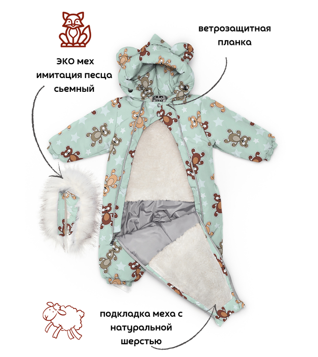 Комбинезон детский зимний для новорожденных. Этот классический детский зимний комбинезон превосходное дополнение к зимнему гардеробу. Он изготовлен из сверхпрочного материала и поэтому станет идеальным выбором для активных детей, которые любят играть на свежем воздухе. Съемный капюшон обеспечивает дополнительную безопасность и эффективно защищает щечки от морозного ветра, а съемные штрипки не дадут концам брючин задираться во время веселых игр на свежем воздухе. Дополнительно утеплен несъемной жилеткой с содержанием шерсти.
