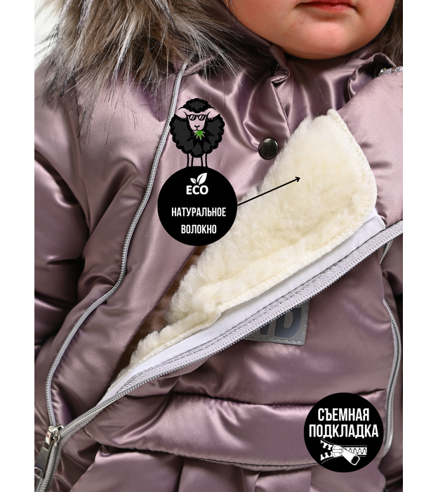 100%ПЭ, утеплитель синтепон 200 гр., подстежка съемная с содержанием шерсти 10%