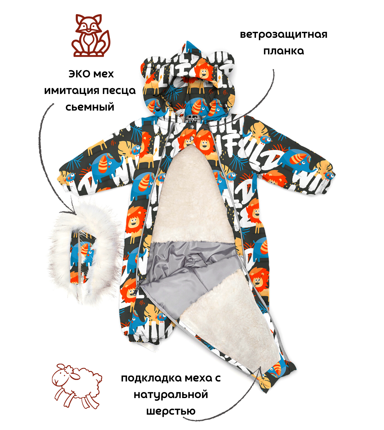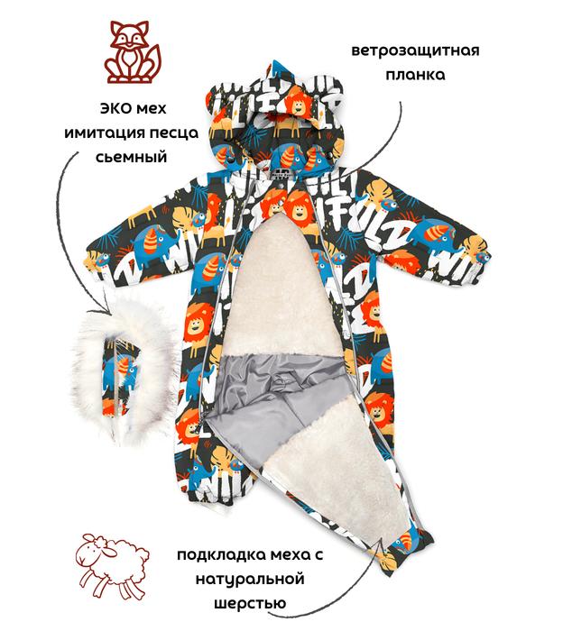 Комбинезон детский зимний для новорожденных. Этот классический детский зимний комбинезон превосходное дополнение к зимнему гардеробу. Он изготовлен из сверхпрочного материала и поэтому станет идеальным выбором для активных детей, которые любят играть на свежем воздухе. Съемный капюшон обеспечивает дополнительную безопасность и эффективно защищает щечки от морозного ветра, а съемные штрипки не дадут концам брючин задираться во время веселых игр на свежем воздухе. Дополнительно утеплен несъемной жилеткой с содержанием шерсти.