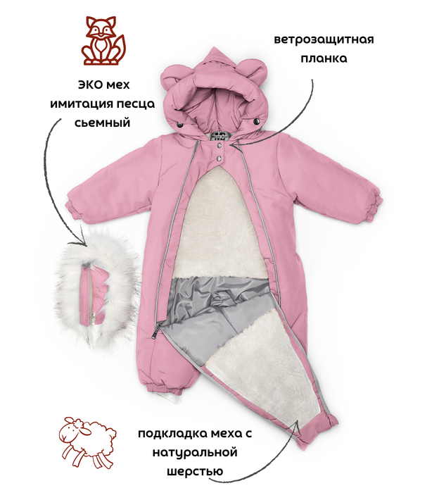 Комбинезон детский зимний для новорожденных. Этот классический детский зимний комбинезон превосходное дополнение к зимнему гардеробу. Он изготовлен из сверхпрочного материала и поэтому станет идеальным выбором для активных детей, которые любят играть на свежем воздухе. Съемный капюшон обеспечивает дополнительную безопасность и эффективно защищает щечки от морозного ветра, а съемные штрипки не дадут концам брючин задираться во время веселых игр на свежем воздухе. Дополнительно утеплен несъемной жилеткой с содержанием шерсти.