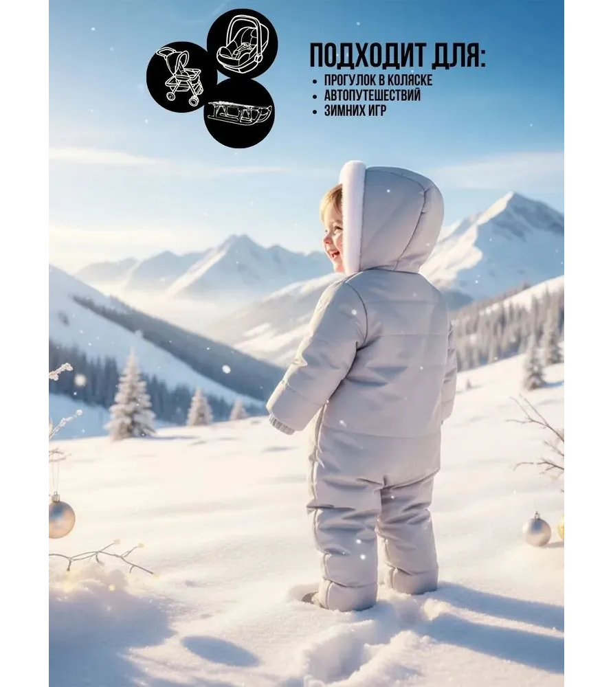 Теплый зимний комбинезон арт. 264ш/2 детский для новорожденных девочек и мальчиков. Состав: верх 100% ПЭ, утеплитель синтепон 200гр, подкладка шерсть 10%/ ПЭ 90%. Роста/см: 62, 68, 74, 80. Этот классический детский зимний комбинезон для новорожденного превосходное дополнение к зимнему гардеробу. Он изготовлен из сверхпрочного материала и поэтому станет идеальным выбором для активных детей, которые любят играть на свежем воздухе. Капюшон с отстегивающейся опушкой обеспечивает дополнительную безопасность и эффективно защищает щечки от морозного ветра. Комбез детский дополнительно утеплен подкладкой с содержанием шерсти.