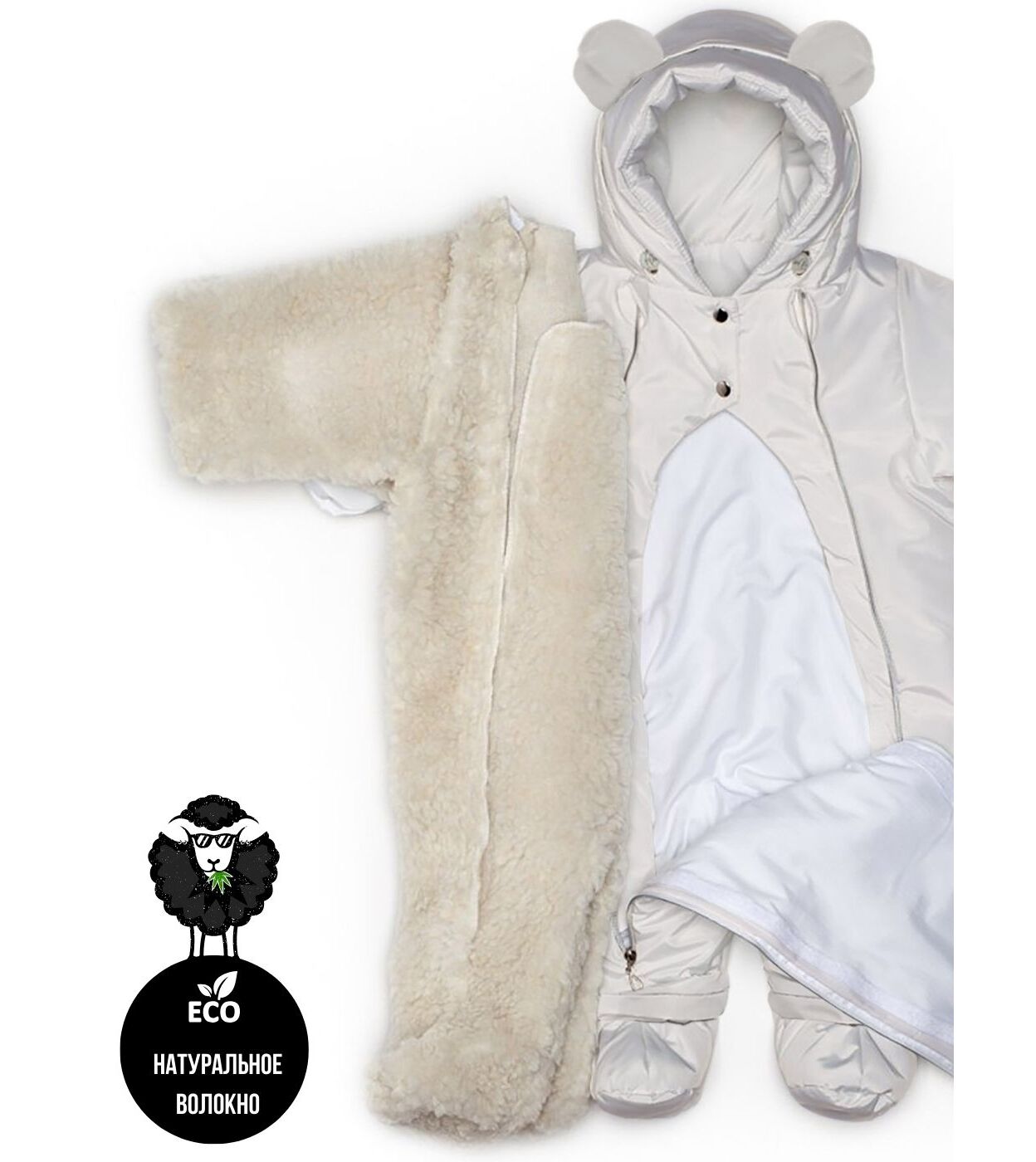 100%ПЭ, утеплитель синтепон 200 гр., подстежка съемная с содержанием шерсти 10%