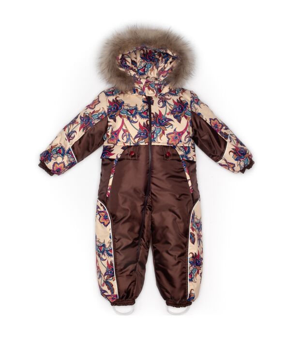 Комбинезон, Зима, Бежевые цветы+коричневый, арт. 223шм/2 (104 см) (116 см)