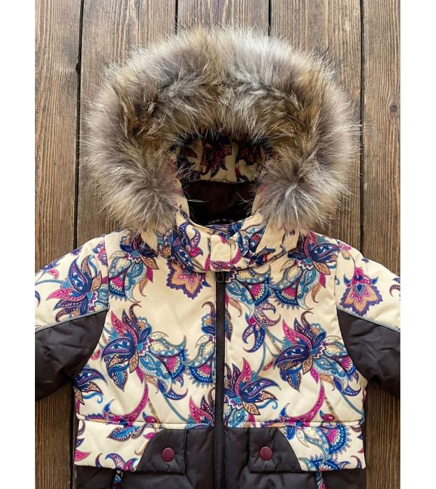 Комбинезон, Зима, Бежевые цветы+коричневый, арт. 223шм/2