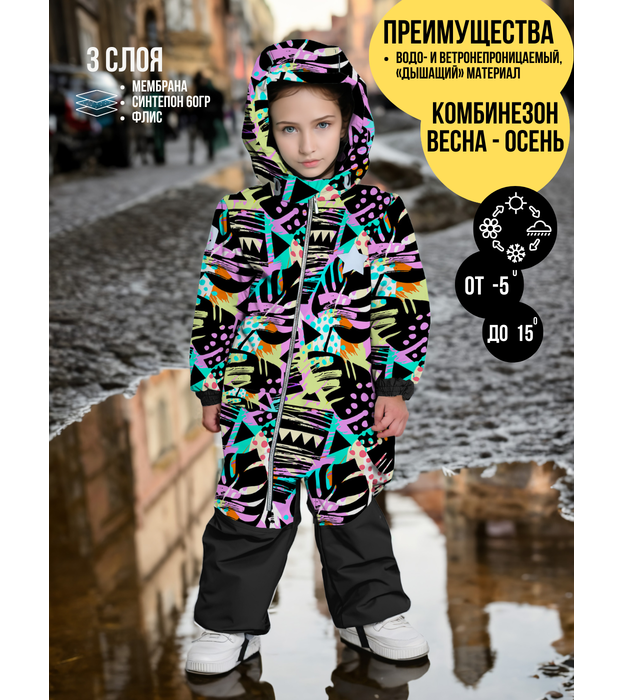 Комбинезон, Зима, Разноцветные листочки, арт. 238ф