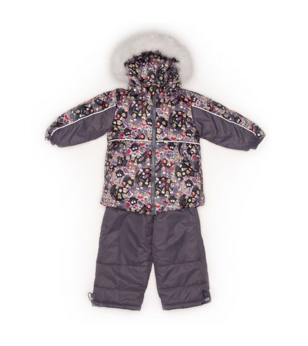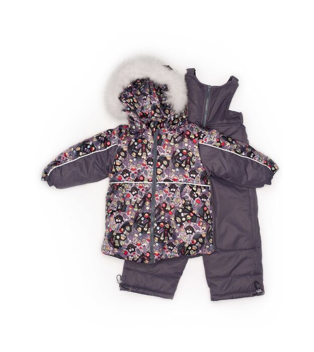 Комплект (Куртка + Полукомбинезон), С опушкой, №284/1 (Совы с конфетами+серый) арт.409ШМ/2 (80 см)
