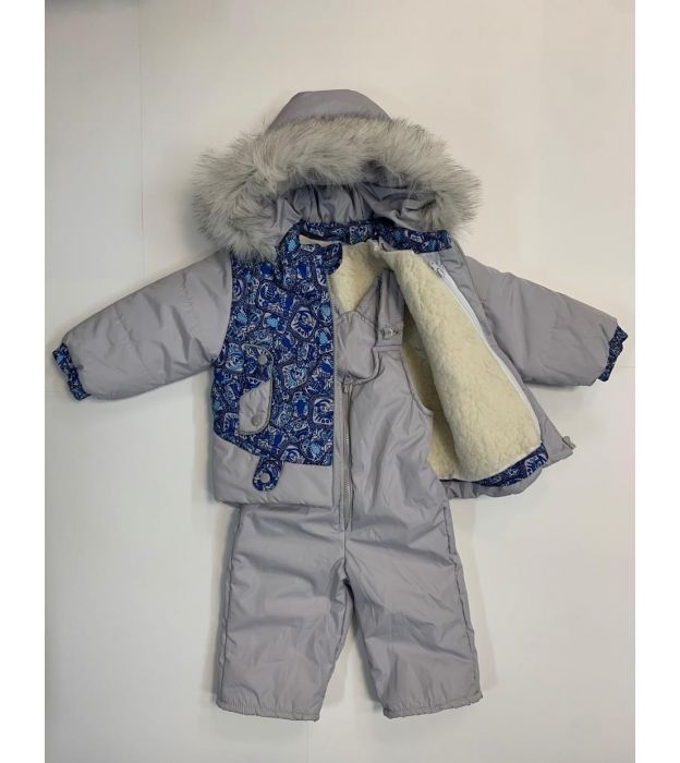 Комплект (Куртка + Полукомбинезон), С опушкой, Серая этника арт.672ШМ/2