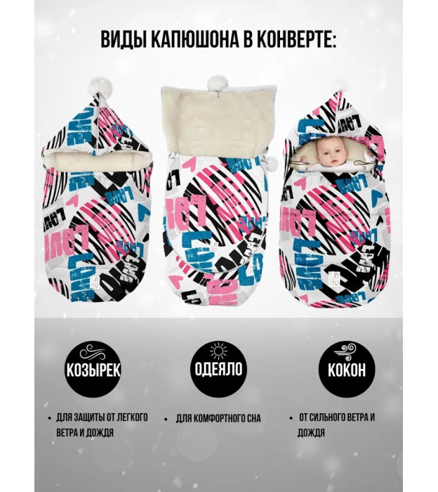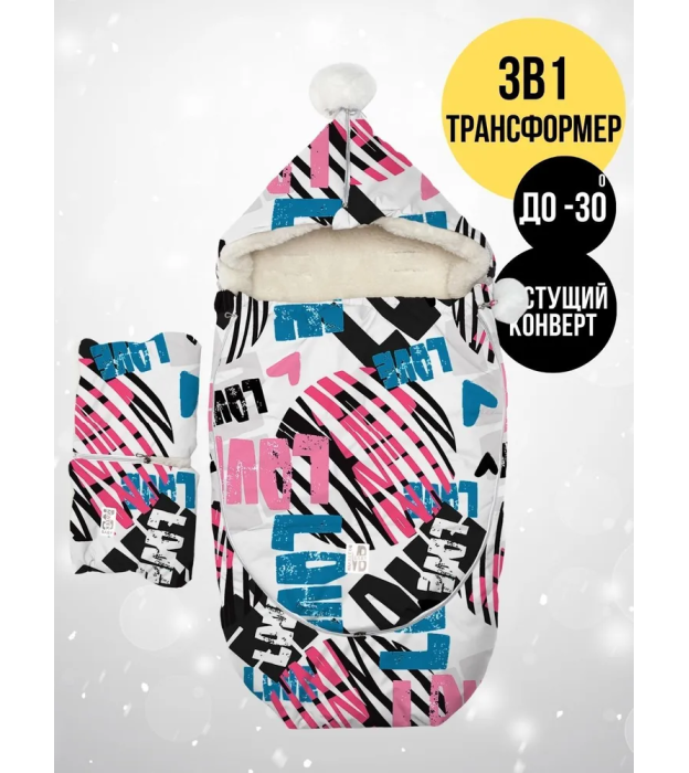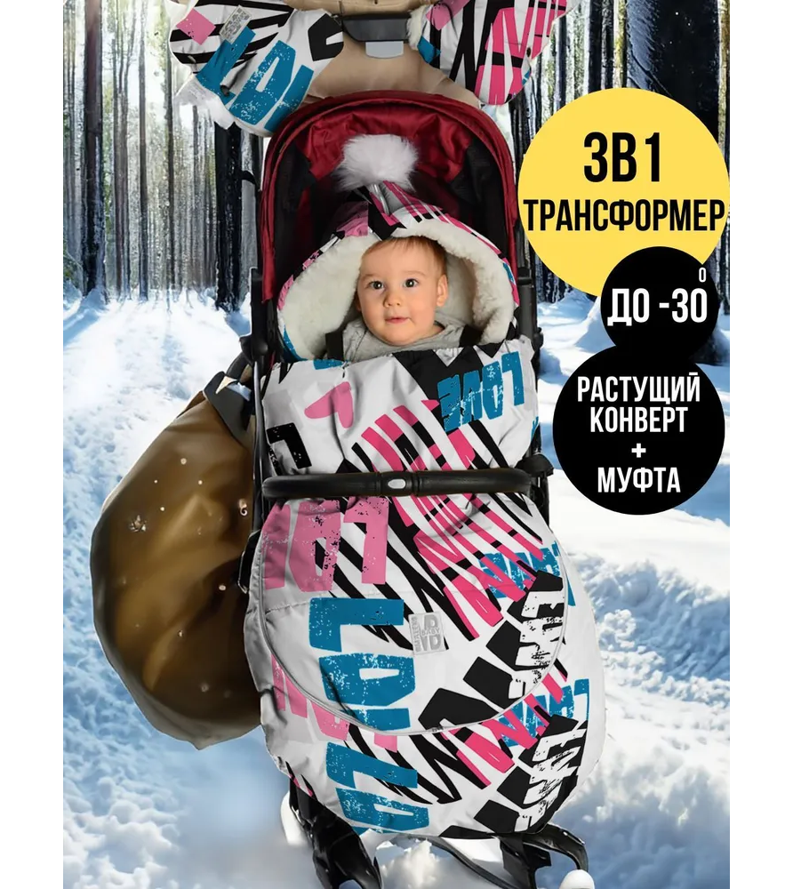 Конверт 2 в 1 + Муфта, Любовь розовая, арт.513Ш/1