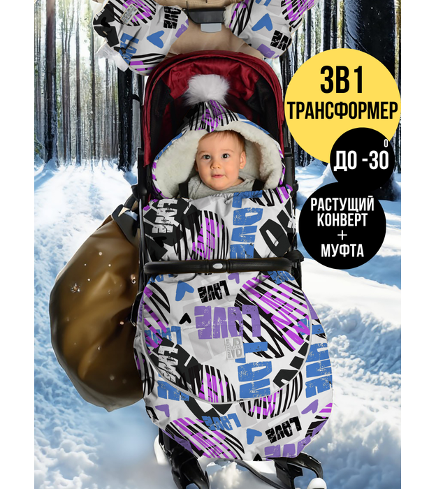 Конверт 2 в 1 + Муфта, Любовь фиолетовая, арт.513Ш/1