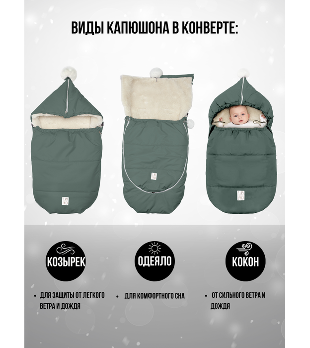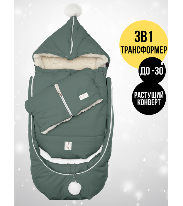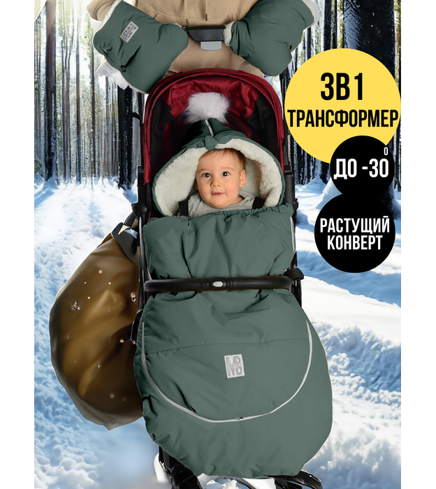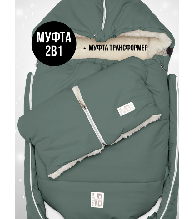 Конверт 2 в 1 + Муфта, Серо-зеленый, арт.513Ш/1