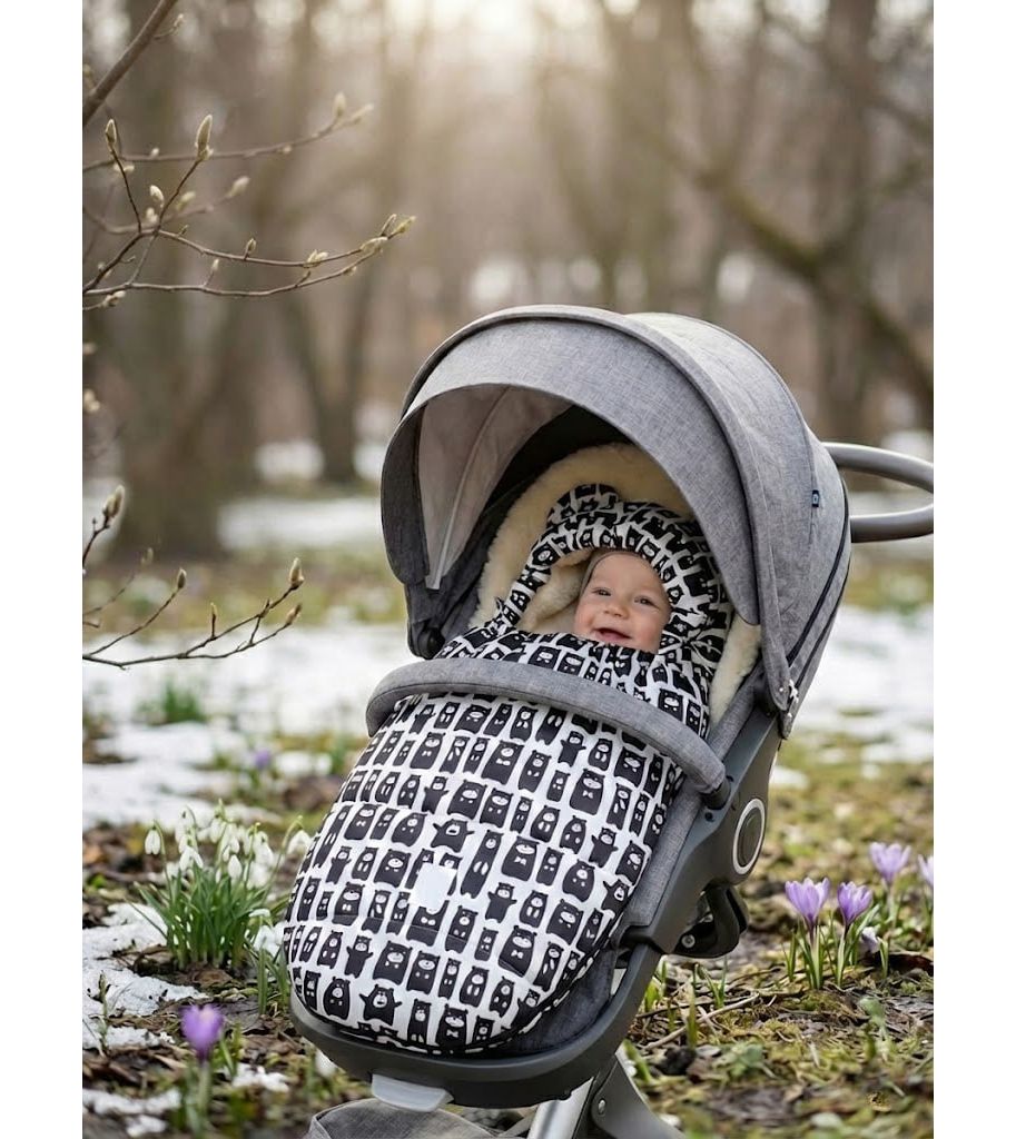 Конверт для сна и прогулок, Черные медведи на белом арт.512Ш