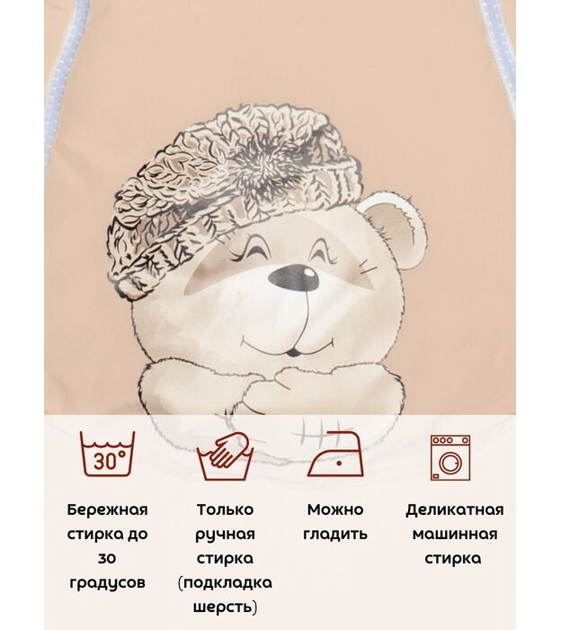 Состав: верх: 100% полиэстер,  утеплитель-синтепон 200г. подкладка несъемная, с содержанием шерсти 10%