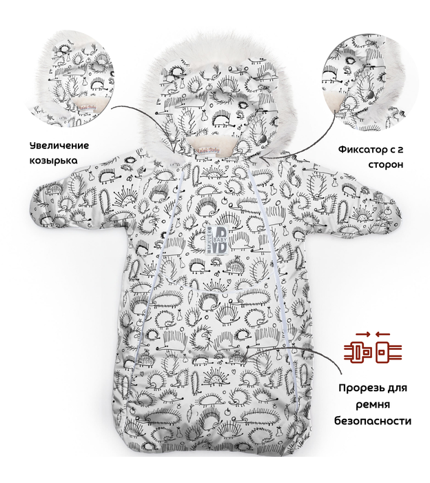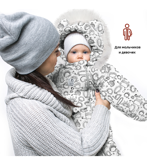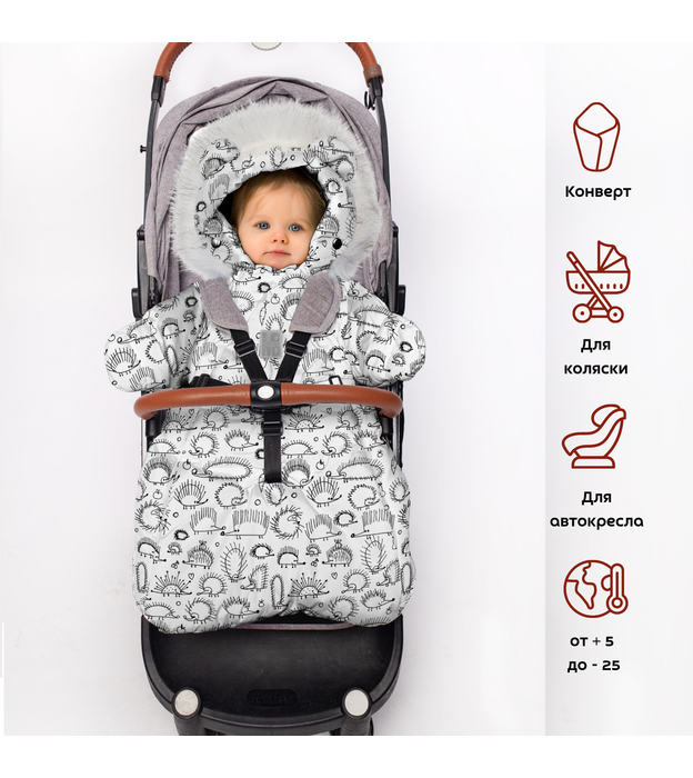 Конверт, Зима, Ежи в контуре на белом, арт.306Ш/2