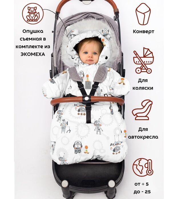 Конверт, Зима, Роботы на белом, арт.306Ш/2