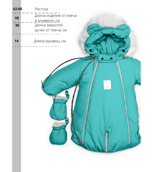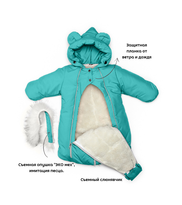 Комбинезон-конверт "трансформер", Бирюза ,арт. 167шм/2
