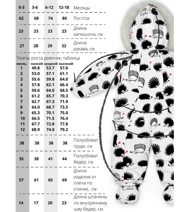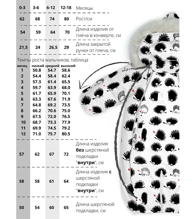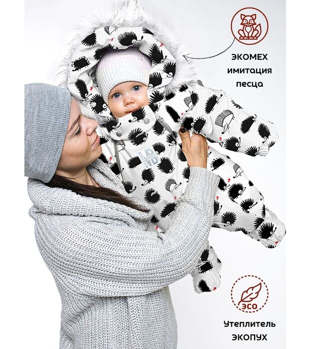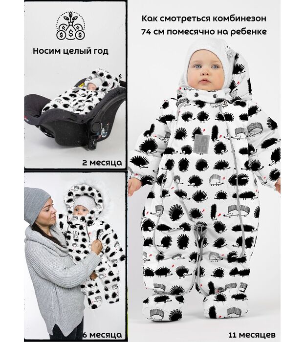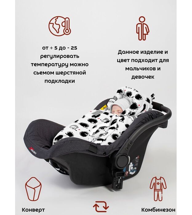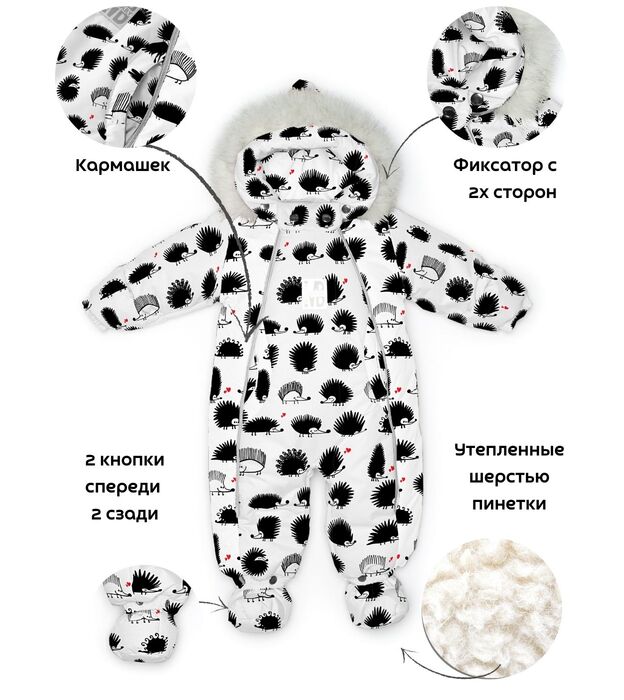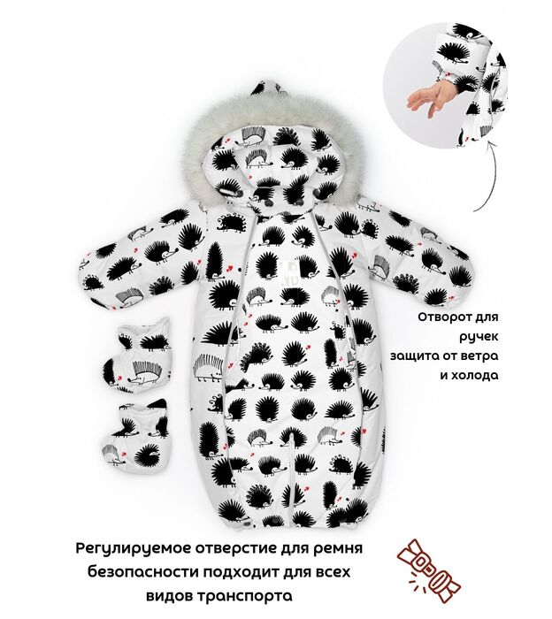 Комбинезон-конверт "трансформер", Ежики черные на белом, арт.163шм/2