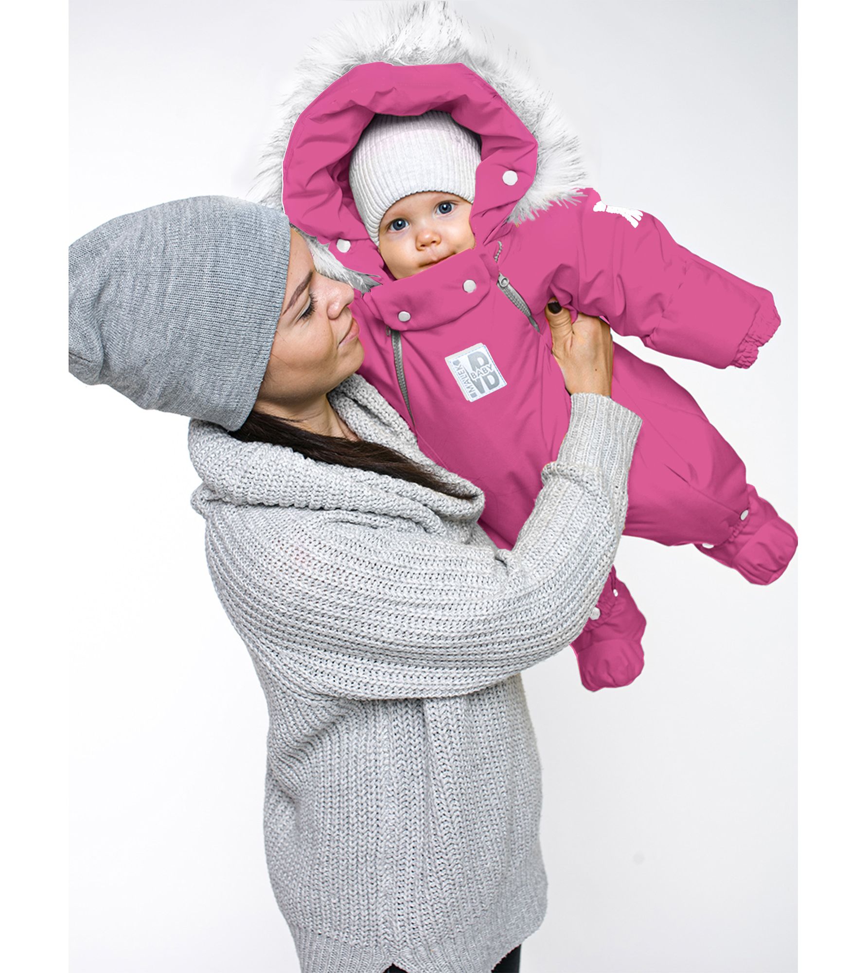 Функциональные изделия для комфорта Отвороты на рукавах заменяют варежки, капюшон на резинке защищает голову от сквозняков и холода, съемные пинетки не сползают и легко крепятся.