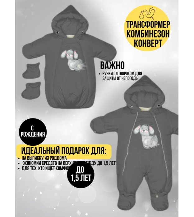 Комбинезон-конверт "трансформер", Графит, арт. 147шм