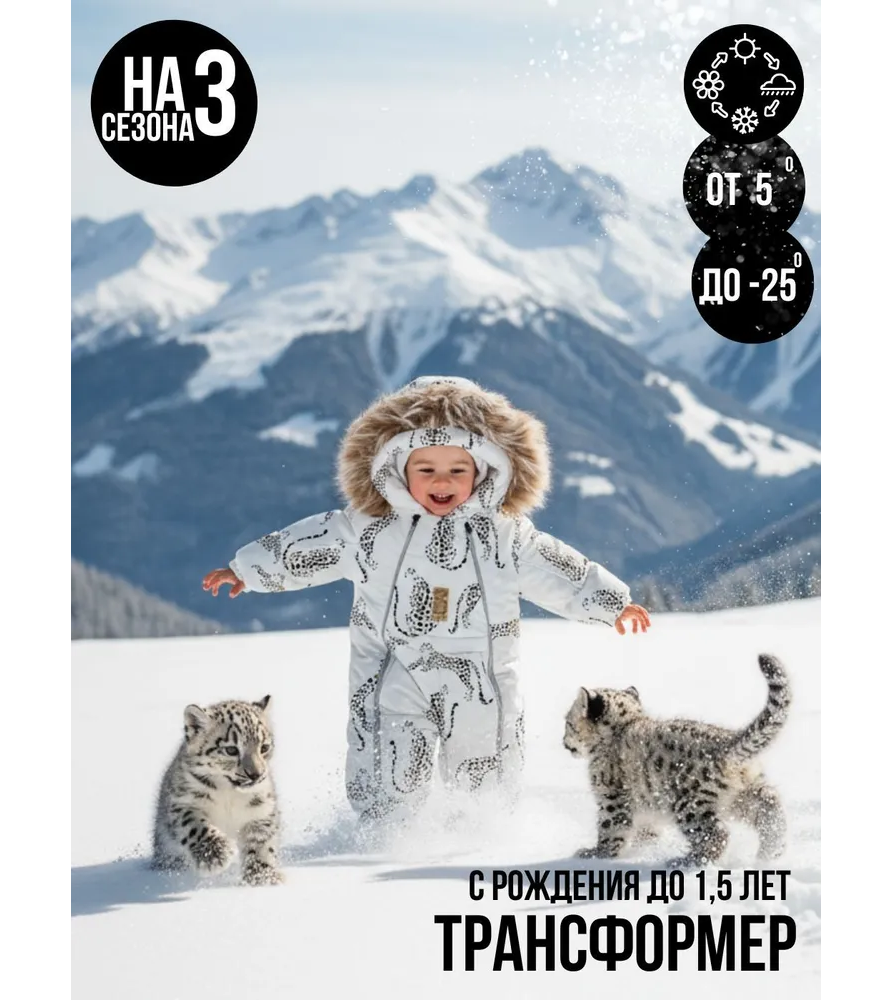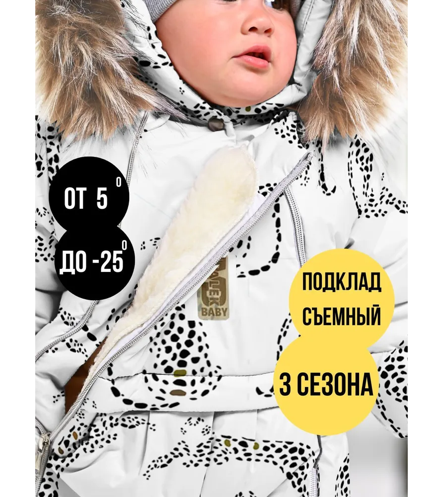 Детский РАСТУЩИЙ комбинезон-трансформер MaLeK BaBy арт. 170шм/2 — идеальное решение для новорождённых и малышей от 0 до 18 месяцев Откройте для себя идеальное сочетание функциональности, тепла и стиля в зимнем комбинезоне-трансформер MaLeK BaBy — созданном специально для новорождённых, чтобы защищать вашего малыша от непогоды с первых дней жизни. Этот комбинезон подходит для использования в течение трёх сезонов, благодаря продуманной системе трансформации и премиальным материалам. Особенности и преимущества: Температурный режим: от +5 до -25°C — идеален как зимний комбинезон, так и демисезонный комбинезон для новорожденных; Мембранная ткань – прочная, ветрозащитная, влагостойкая и при этом «дышащая»; Съёмная шерстяная подкладка – тёплая, дышащая, подходит для морозной зимы и легко снимается в межсезонье; Съёмные пинетки – защищают ножки от холода, легко отстёгиваются в помещении или в тёплую погоду; Отвороты на рукавах — позволяют обойтись без варежек, надёжно закрывая ручки; Капюшон с ушками и съёмной опушкой — милый дизайн и дополнительная защита от ветра; Светоотражающие элементы — повышают безопасность малыша в условиях плохой видимости; Каждое изделие проходит проверку качества — надёжность, безопасность и внимание к каждой детали. Механизм трансформации Комбинезон MaLeK BaBy — это универсальное 2-в-1 решение, которое с лёгкостью превращается из утеплённого зимнего комбинезона в демисезонный вариант: В зимнем варианте используется съёмная подкладка с натуральным шерстяным волокном — идеальный выбор для температуры до -25°С. Весной и осенью подкладка легко извлекается, и комбинезон становится лёгким и комфортным даже при +5°C. Съёмные пинетки и возможность трансформации ножек с помощью молний позволяют быстро адаптировать изделие под обувь или использовать как конверт-комбинезон трансформер — удобно как для прогулок, так и для сна малыша. Молнии на ножках позволяют быстро расстегнуть низ и трансформировать комбинезон в классический конверт или облегчённую модель без ножек. Это особенно удобно в коляске, на переодевании или при смене погоды. Назначение и аудитория Комбинезон-трансформер MaLeK BaBy идеально подойдёт: для новорожденных и детей до 18 месяцев; как первый зимний комбинезон для малыша; для родителей, ищущих детские комбинезоны трансформеры, совмещающие стиль и практичность; для тех, кто хочет купить комбинезон трансформер зимний с возможностью ношения в межсезонье. Почему выбирают MaLeK BaBy: Безопасность и проверенное качество; Высокотехнологичные материалы и пошив; Изысканный внешний вид с капюшоном-«ушки»; Производство с учётом потребностей российских родителей и климата.