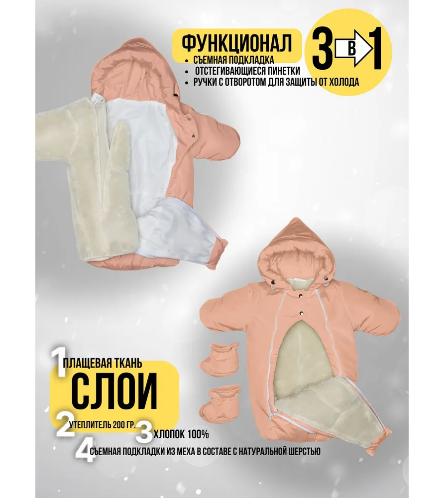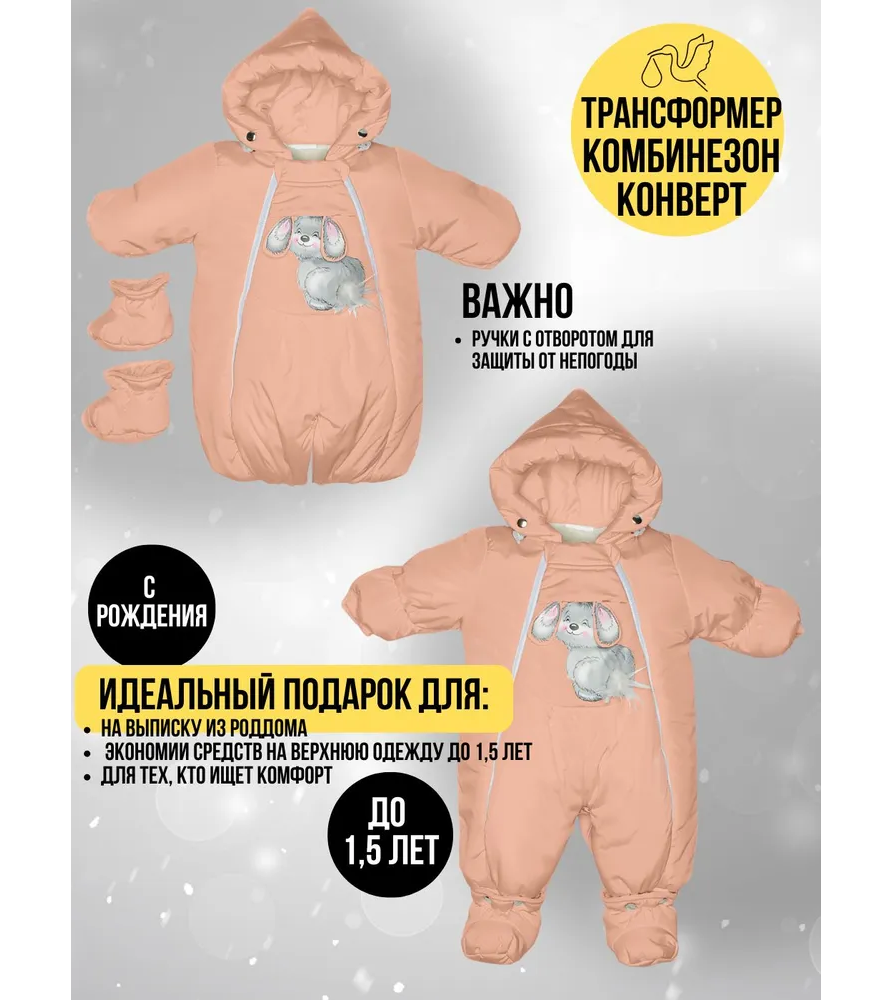 Комбинезон-конверт "трансформер", Лососевый, арт. 147шм
