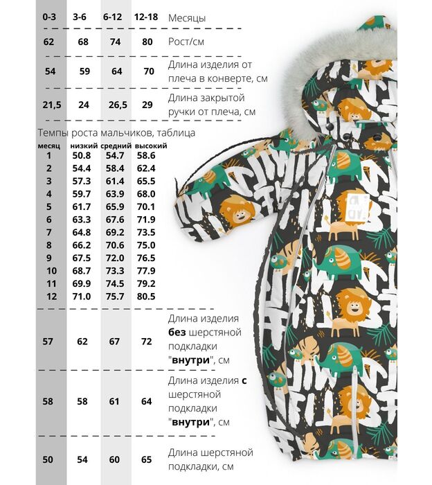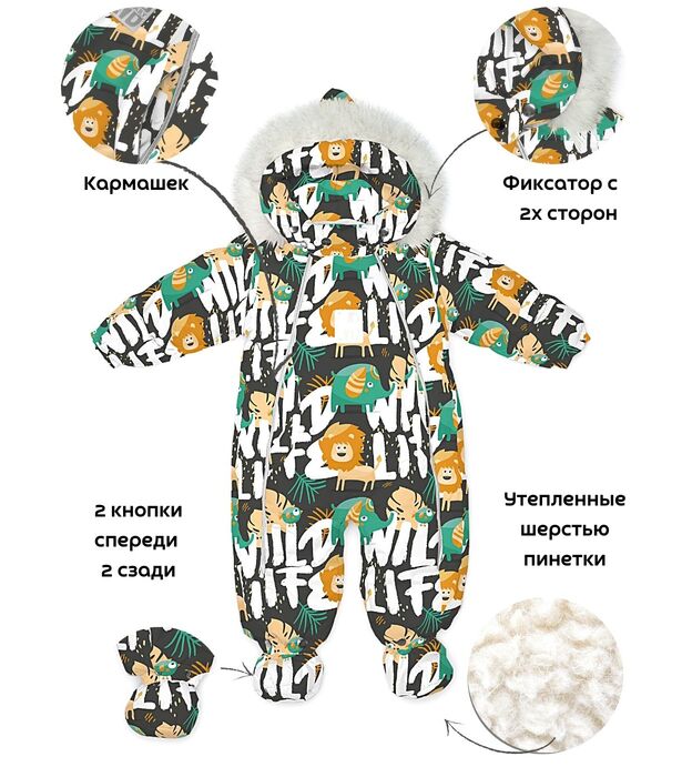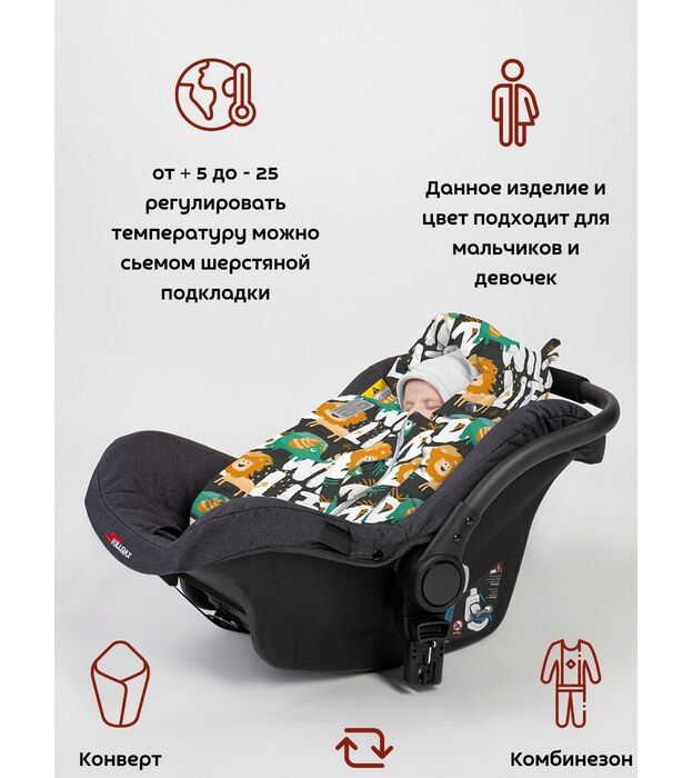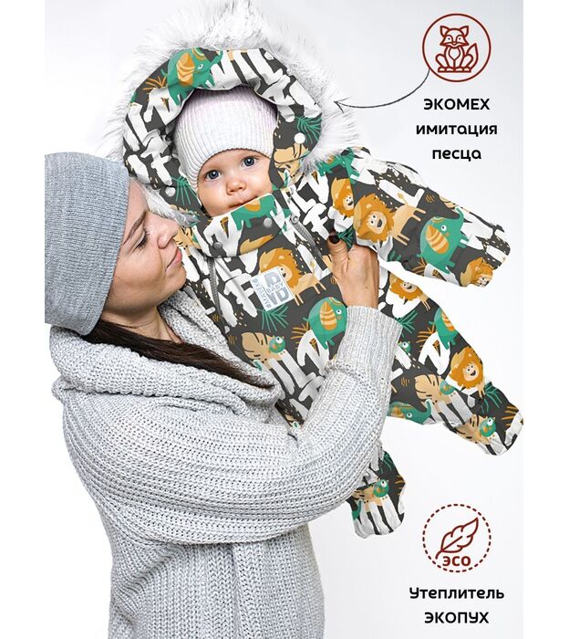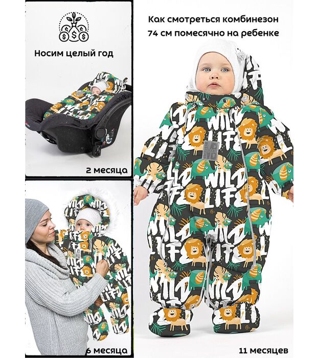 Комбинезон-конверт "трансформер", Львята зеленые слоники птички, арт. 163ШМ/2