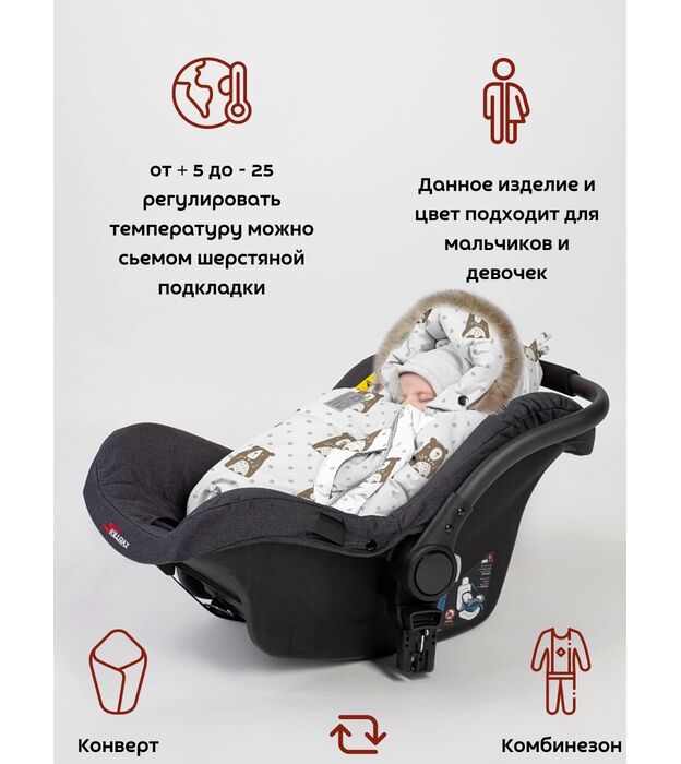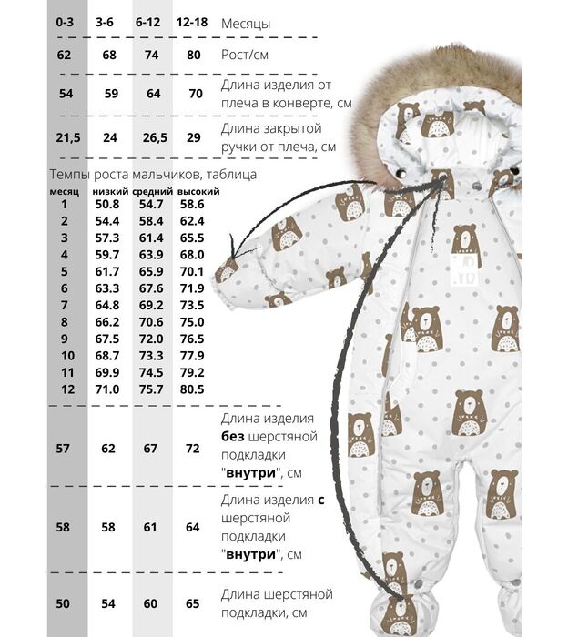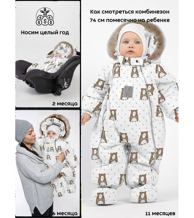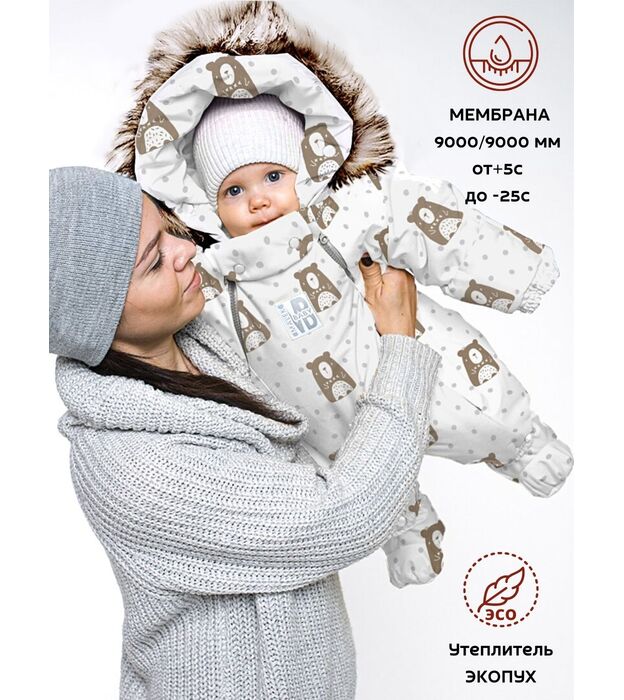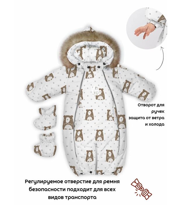 Комбинезон-конверт "трансформер", Медведь горох капучино, 163шм/2