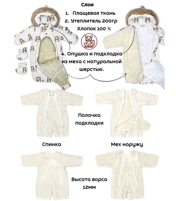 верх-100%пэ, утеплитель синтепон 200гр, подстежка съемная с содержанием шерсти 10%
