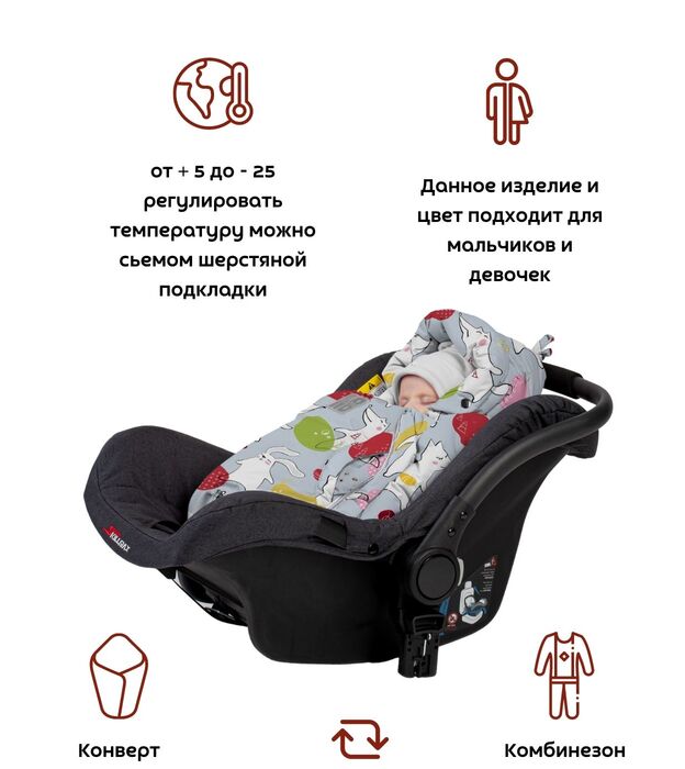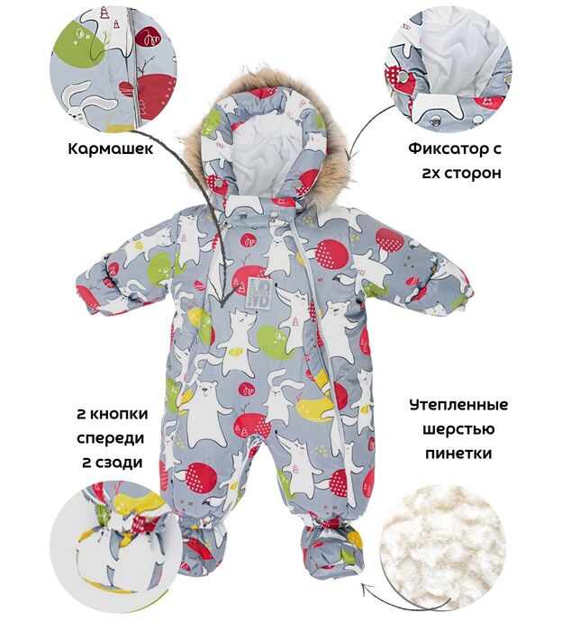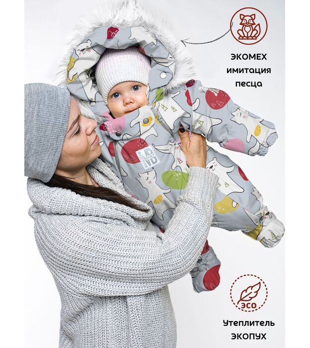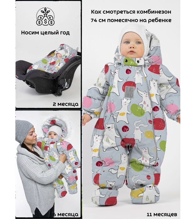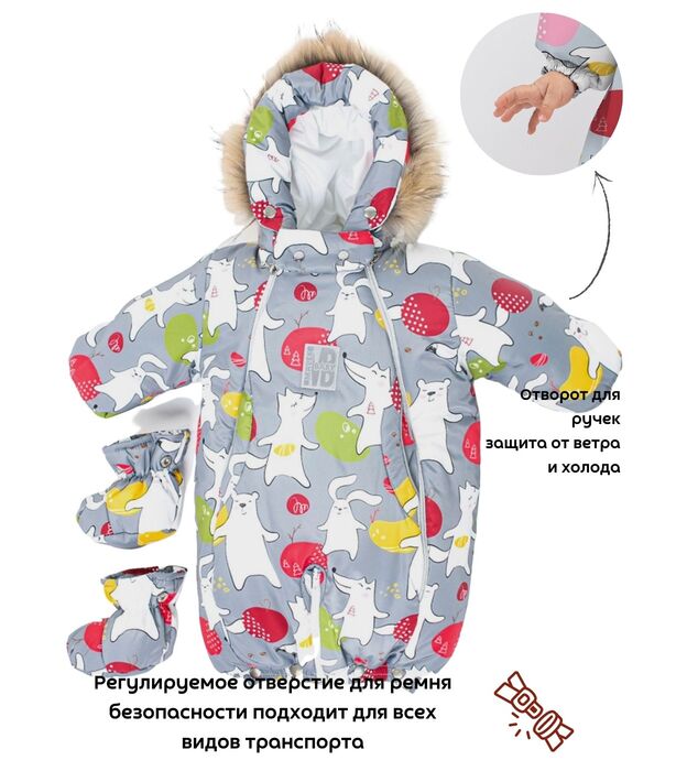 Комбинезон-конверт "трансформер", Медведь и заяц на сером, 163шм/2