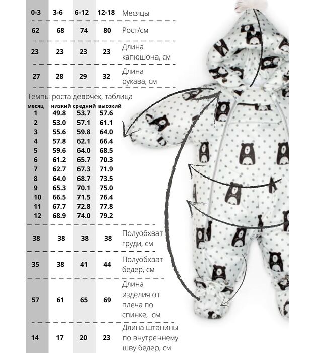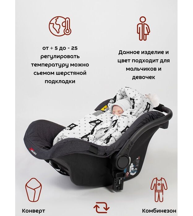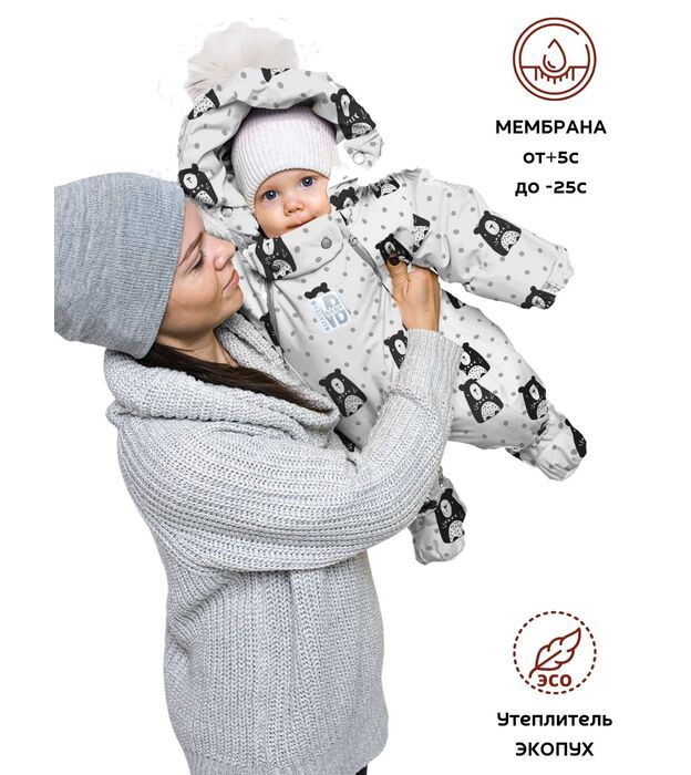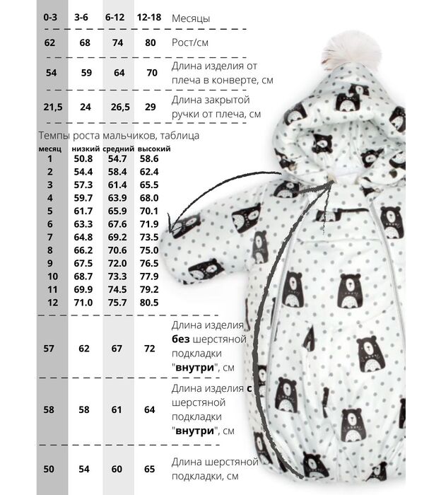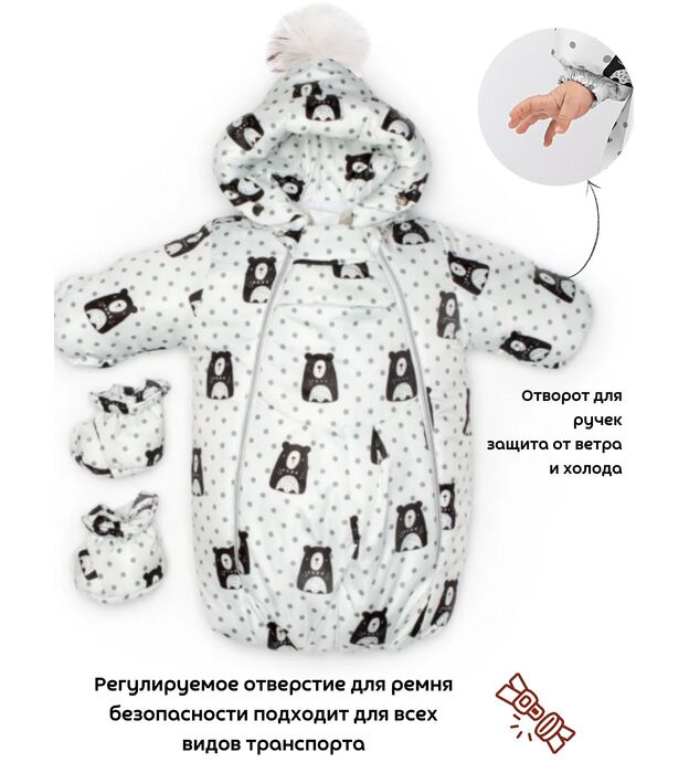 Комбинезон-конверт "трансформер", Медведь в горох черный, 163шм/1