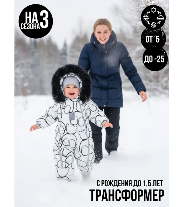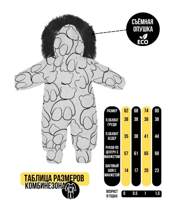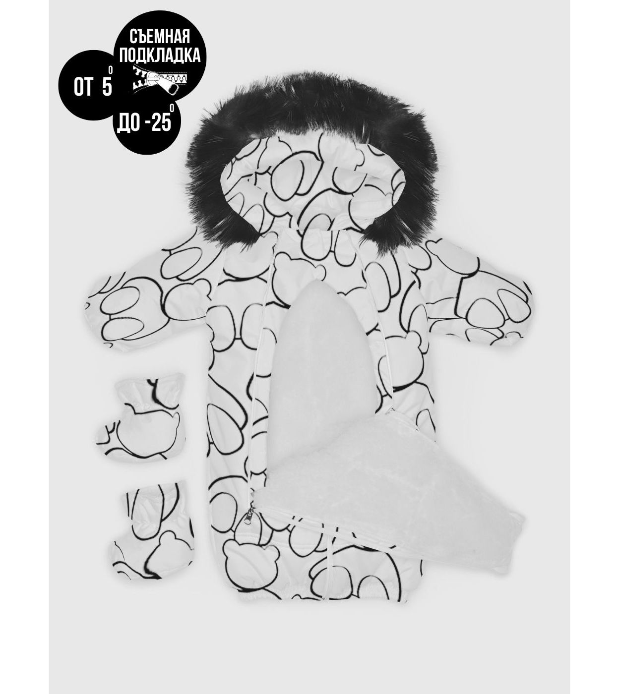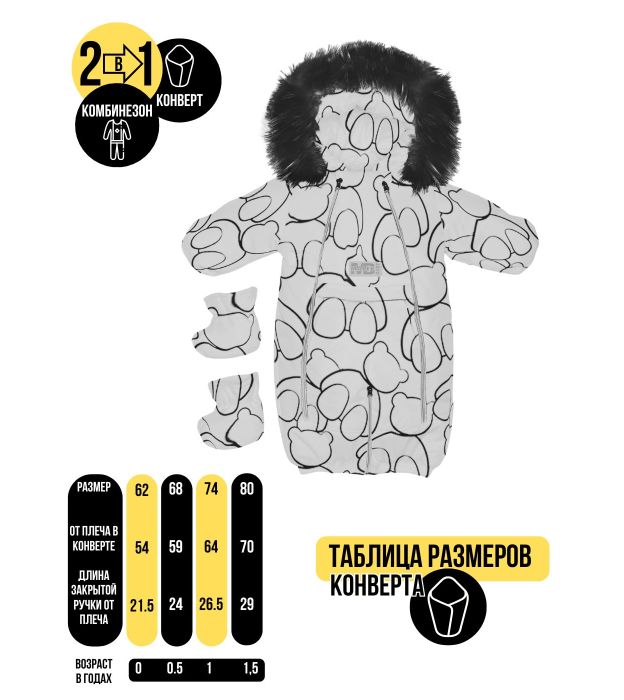 Комбинезон-конверт "Трансформер", Мишки на белом, 170шм/2