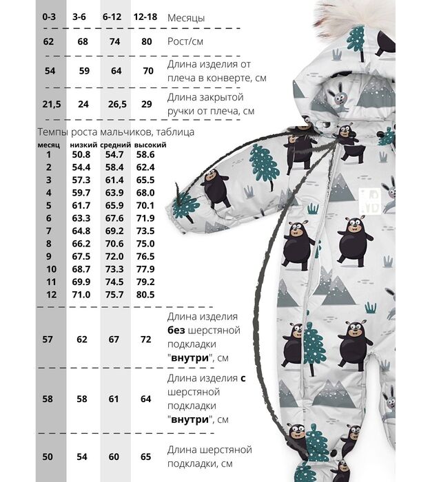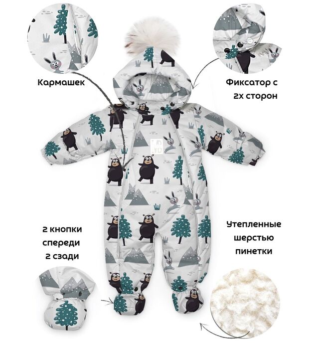 Комбинезон - трансформер детский, зимний. Изготовлен, из водонепроницаемого, не продуваемого, сверхпрочного материала и утеплен съемной подкладкой, в составе которой натуральная овечья шерсть. В зависимости от возраста вашего малыша и погодных условий вы можете использовать изделие как конверт или комбинезон. В режиме конверт модель идеальна для новорожденных, позволяет не тревожить малыша при одевании и раздевании во время сна, при желании с помощью молнии конверт легко трансформируется в комбинезон. Когда потеплеет, вы можете снять шерстяную подкладку, и комбинезон подойдет для весенней погоды. Отвороты на рукавах заменяют варежки, которые согреют маленькие ручки вашего малыша в холодную погоду. Защитная планка и плотно прилегающий к голове капюшон со съемной опушкой из натурального меха защитит от сильного ветра за счет вшитой утягивающей резинки. Цветовая гамма опушки возможна в кофейном, либо белом варианте. В комплекте отстегивающиеся пинетки.