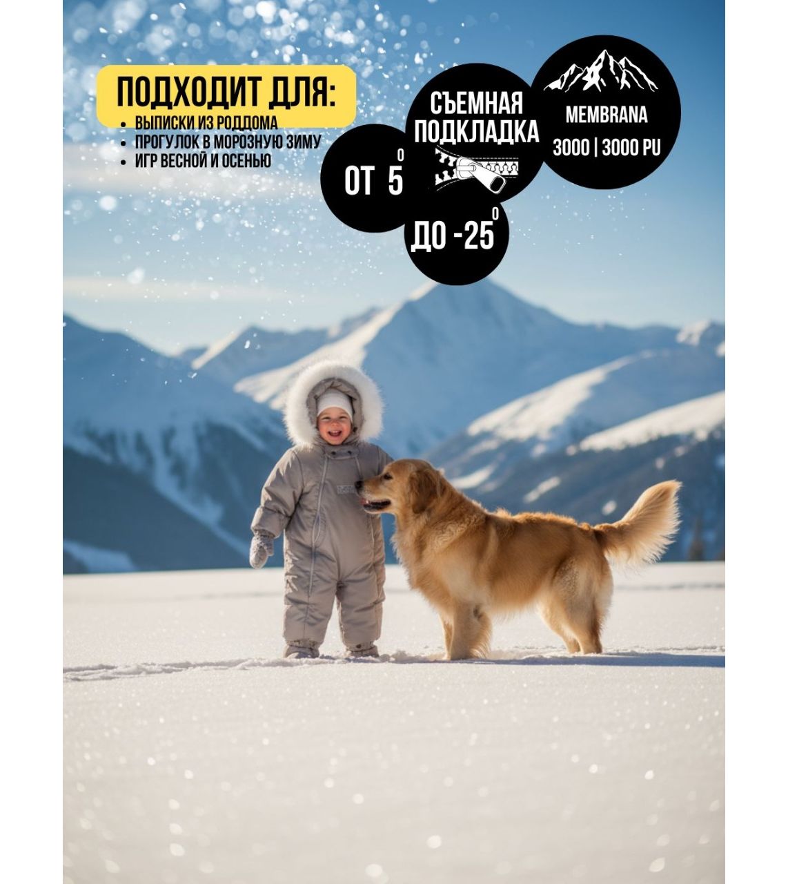 - Надёжные материалы и утеплитель Мембранная ткань устойчива к влаге и ветру, не боится дождя и мокрого снега, а подкладка из овечьей шерсти и синтепона сохраняет оптимальный температурный режим.