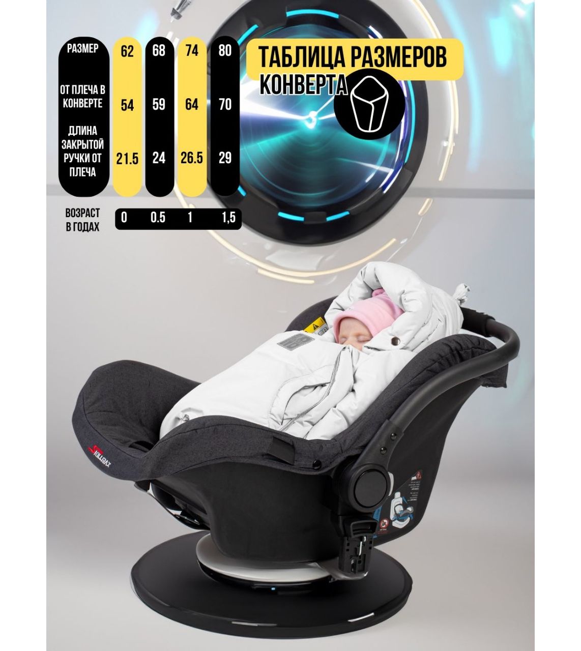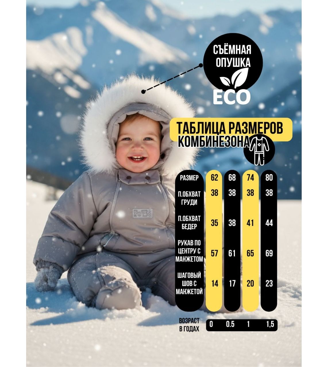 - Подходит для малышей от 0 до 18 месяцев Универсальный размер, рассчитан на рост от 56 до 80 см.