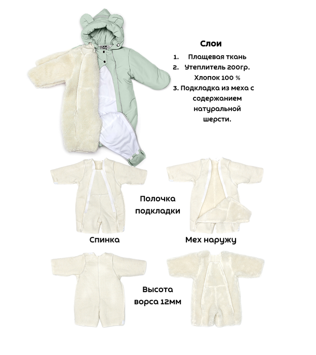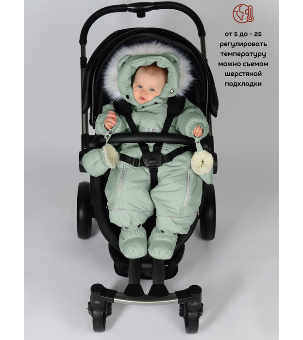 Комбинезон конверт зимний в коляску для новорожденных MaLeK BaBy. Конверт в коляску зимний изготовлен из водонепроницаемого, не продуваемого, сверхпрочного материала и утеплен съемной подкладкой, в составе которой натуральная овечья шерсть. Зимний конверт для новорожденных вы можете использовать и как комбинезон. Транформер в режиме конверт зимний подойдет в автокресло или коляску модель идеальна как для новорожденных так взрослее, позволяет не тревожить малыша при одевании и раздевании во время сна, при желании с помощью молнии конверт легко трансформируется в комбинезон. Вы можете снять шерстяную подкладку и сделать комбинезон детский зимний для о осени. Отвороты заменяют варежки, которые согреют маленькие ручки вашего малыша в холодную погоду. Защитная планка зимнего конверта и плотно прилегающий к голове капюшон со съемной опушкой из натурального меха защитит от сильного ветра за счет вшитой утягивающей резинки. В комплекте с зимним конвертом идут отстегивающиеся пинетки и варежки