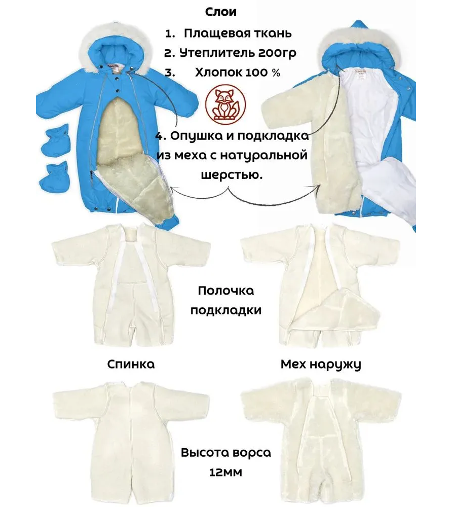 Надежный и стильный комбинезон-трансформер Malek Baby арт. 163шм/2 — отличный выбор для малышей на сезон осень-зима. Модель выполнена из современной мембранной ткани, которая не пропускает соблюдение правил и ветер, обеспечивает высокий уровень комфорта даже в переменчивую погоду. Внутри — утеплённая съемная подкладка из натуральной овечьей шерсти и синтепона, идеально сохраняющая тепло.Преимущества и особенности: Категория: верхняя детская одежда Идеально подходит для прогулок, выписки из дома, поездок в коляске и автолюльке. Универсальность трансформера 2-в-1 Комбинезон легко трансформируется в конверт для новорожденных или полноценный комбинезон для подросших малышей — просто меняйте форму по мере роста ребенка. Надёжные материалы и утеплитель Мембранная ткань устойчива к влаге и ветру, не боится дождя и мокрого снега, подкладка из овечьей шерсти и синтепона сохраняют температурный режим. Функциональные изделия для комфорта Отвороты на рукавах заменяют варежки, капюшон на резинке защищает голову от сквозняков и холода, съемные пинетки не сползают и легко крепятся. Гипоаллергенность и простота ухода. Все материалы безопасны для детей первых дней жизни, легко стираются и быстро сохнут, сохраняя внешний вид даже после стирок. Адаптация для малышей от 0 до 18 месяцев Универсальный размер, рассчитан на рост от 56 до 80 см. Рекомендации по использованию: Отлично подходит для городских условий, поездок, длительных прогулок осенью и зимой.