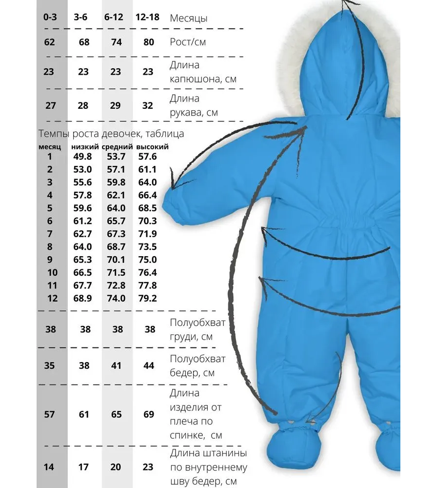 Комбинезон-конверт "трансформер", Небесно-голубой, 163ШМ/2