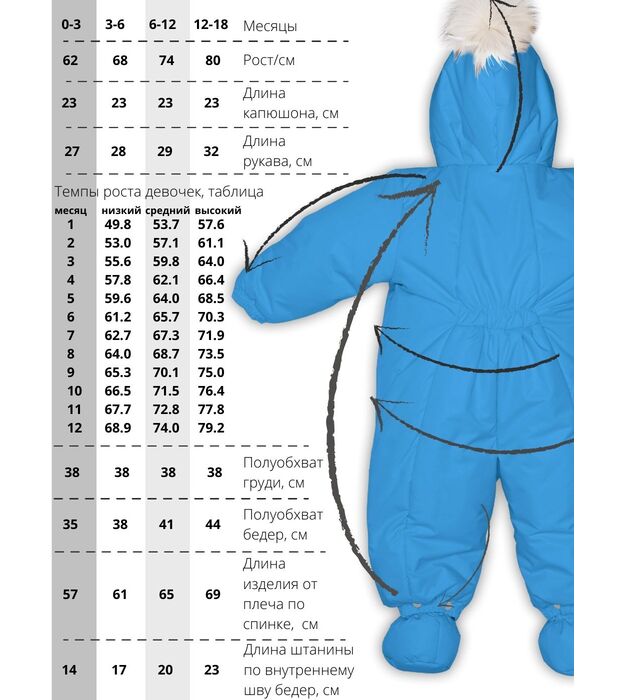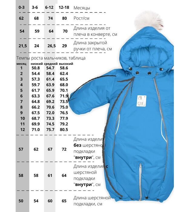 Комбинезон-конверт "трансформер", Небесный, 163шм/1