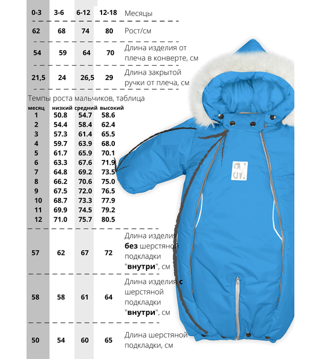 Комбинезон - трансформер детский, зимний. Изготовлен, из водонепроницаемого, не продуваемого, сверхпрочного материала и утеплен съемной подкладкой, в составе которой натуральная овечья шерсть. В зависимости от возраста вашего малыша и погодных условий вы можете использовать изделие как конверт или комбинезон. В режиме конверт модель идеальна для новорожденных, позволяет не тревожить малыша при одевании и раздевании во время сна, при желании с помощью молнии конверт легко трансформируется в комбинезон. Когда потеплеет, вы можете снять шерстяную подкладку, и комбинезон подойдет для весенней погоды. Отвороты на рукавах заменяют варежки, которые согреют маленькие ручки вашего малыша в холодную погоду. Защитная планка и плотно прилегающий к голове капюшон со съемной опушкой из натурального меха защитит от сильного ветра за счет вшитой утягивающей резинки. Цветовая гамма опушки возможна в кофейном, либо белом варианте. В комплекте отстегивающиеся пинетки.