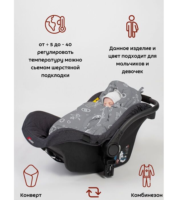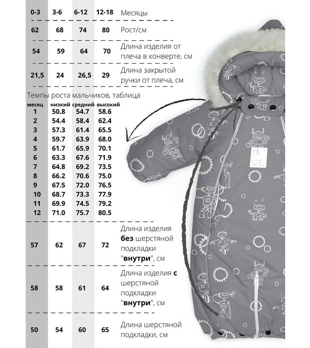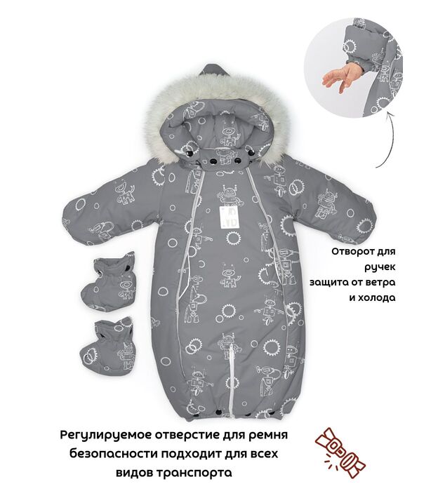Комбинезон-конверт "трансформер", Роботы на сером, арт. 163ШМ/2