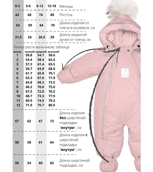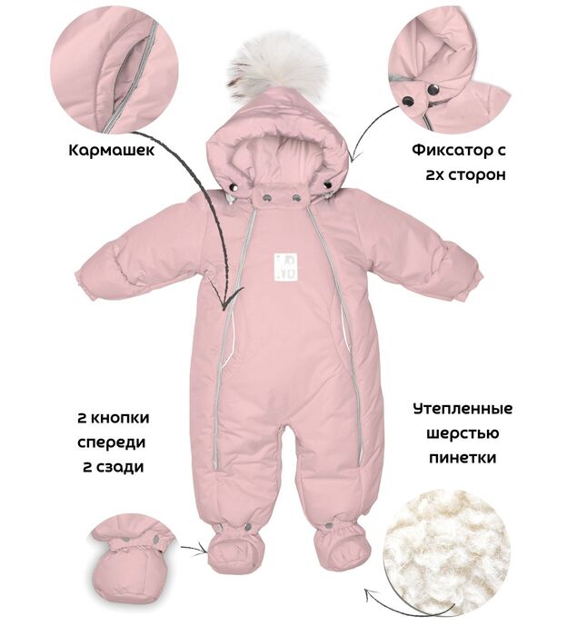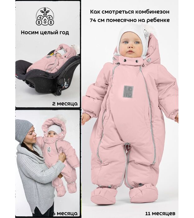 Комбинезон-конверт "трансформер", Розовый пыльный, 163шм/1