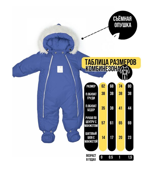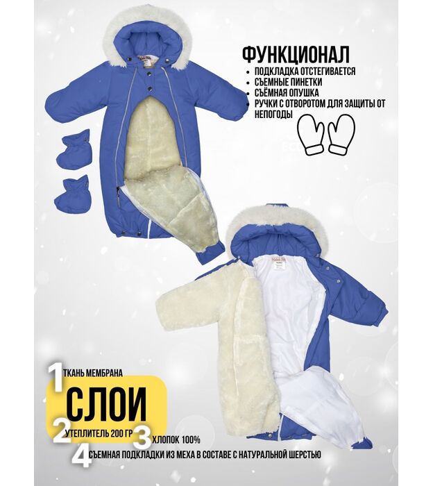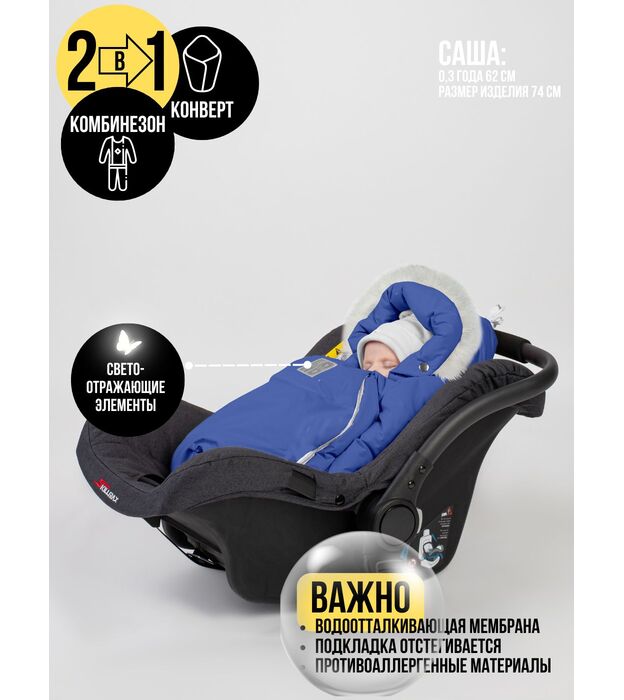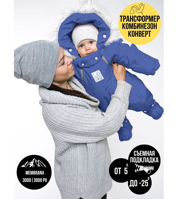 Комбинезон-конверт "трансформер", с опушкой, Синий 163шм/2