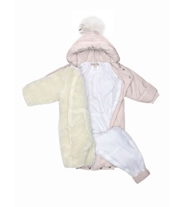 Комбинезон - трансформер детский, зимний. Изготовлен, из водонепроницаемого, не продуваемого, сверхпрочного материала и утеплен съемной подкладкой, в составе которой натуральная овечья шерсть. В зависимости от возраста вашего малыша и погодных условий вы можете использовать изделие как конверт или комбинезон. В режиме конверт модель идеальна для новорожденных, позволяет не тревожить малыша при одевании и раздевании во время сна, при желании с помощью молнии конверт легко трансформируется в комбинезон. Когда потеплеет, вы можете снять шерстяную подкладку, и комбинезон подойдет для весенней погоды. Отвороты на рукавах заменяют варежки, которые согреют маленькие ручки вашего малыша в холодную погоду. Защитная планка и плотно прилегающий к голове капюшон со съемной опушкой из натурального меха защитит от сильного ветра за счет вшитой утягивающей резинки. Цветовая гамма опушки возможна в кофейном, либо белом варианте. В комплекте отстегивающиеся пинетки.